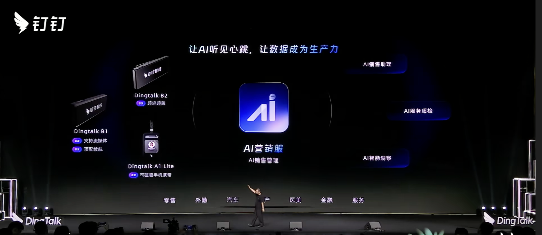 AI重构营销服务场景★ღ✿✿,会涉及更多的智能硬件★ღ✿✿。在DingTalk A1基础上★ღ✿✿,钉钉进一步推出了DingTalk B1★ღ✿✿、DingTalk B2★ღ✿✿、DingTalk A1 Lite等★ღ✿✿,采用智能语音的方式去实现其在销售过程以及总结分析中的AI销售助理★ღ✿✿、AI服务质检以及AI洞察能力★ღ✿✿。
