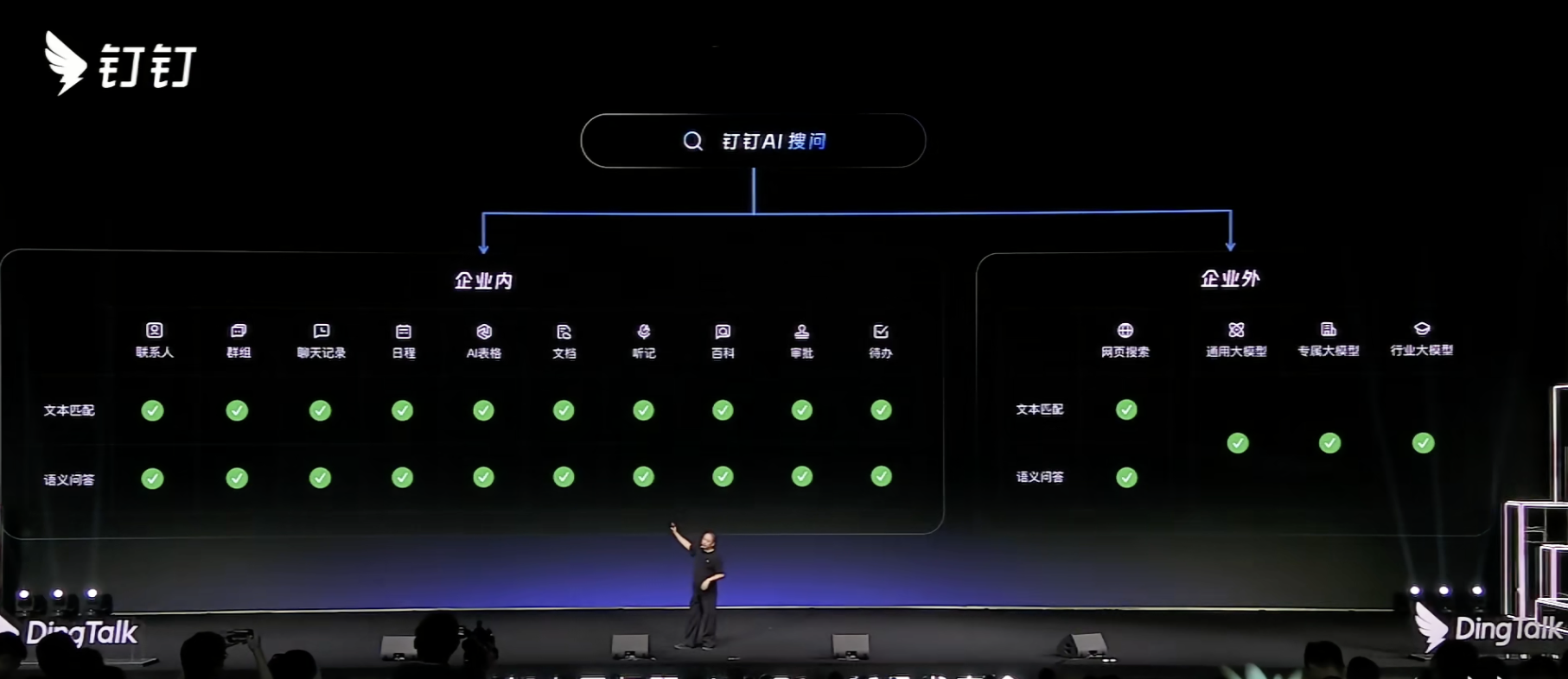 企业内部★ღ✿✿,AI钉钉搜问会支持从联系人到审批★ღ✿✿、待办★ღ✿✿、文档等所有文本内容的搜索★ღ✿✿;建立知识图谱后★ღ✿✿,所有信息将支持语音问答★ღ✿✿。在企业外部★ღ✿✿,AI钉钉搜问支持打通网页搜索k8凯发官方网站★ღ✿✿,对网页搜索文本匹配以及与问答进行支持★ღ✿✿,同时调用通用大模型★ღ✿✿、专属大模型★ღ✿✿、行业大模型★ღ✿✿,用一个框完成全部的文档★ღ✿✿。