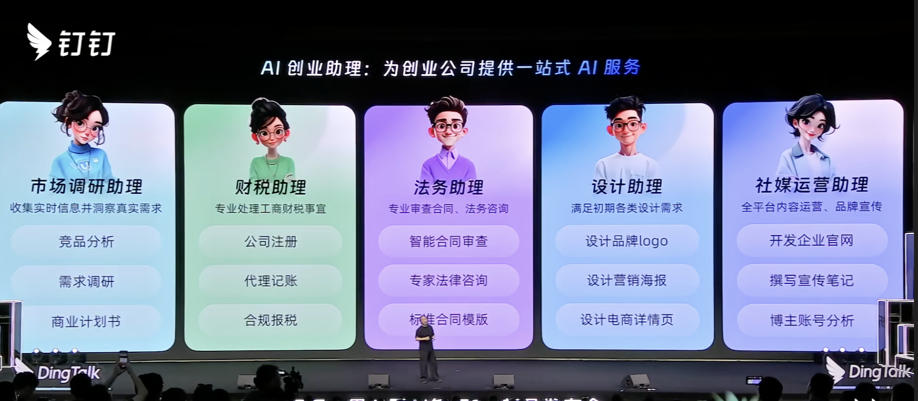 除此之外★ღ✿✿,面向小微创业公司★ღ✿✿,钉钉还推出了“AI创业助理”★ღ✿✿。基于对100多家创业者的访问★ღ✿✿,“AI创业助理”推出市场调研助理★ღ✿✿、财税助理★ღ✿✿、法务助理★ღ✿✿、设计助理★ღ✿✿、设备运营助理5个Agent★ღ✿✿,帮助创企实现一个人也能创业star467★ღ✿✿。
